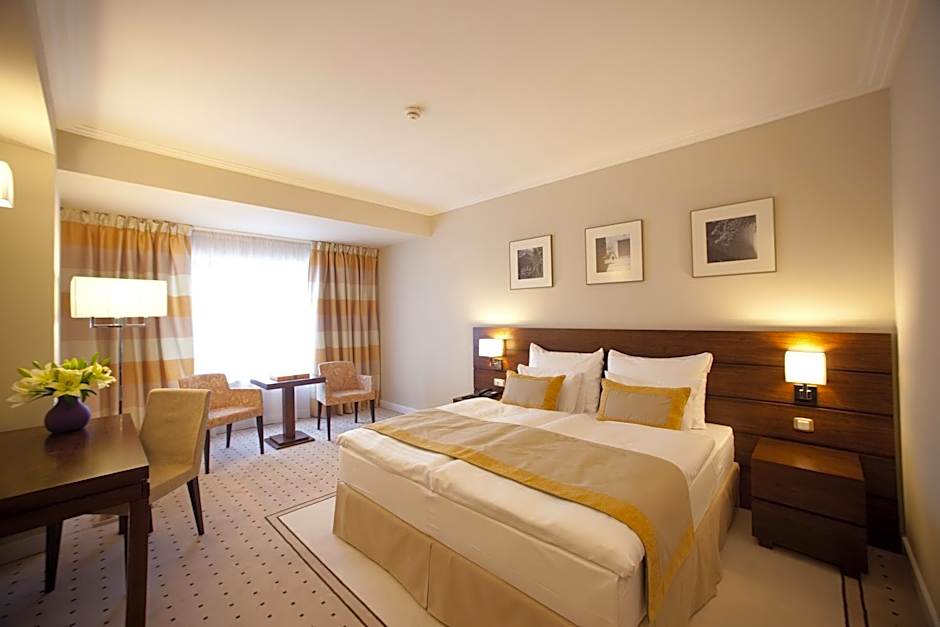 This stylish twin/double room offers a satellite TV and mini-bar. It features warm khaki and cream walls and minimalist walnut furniture.